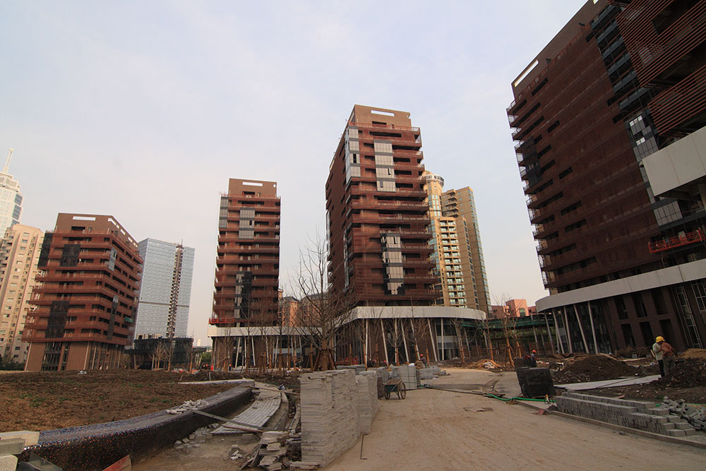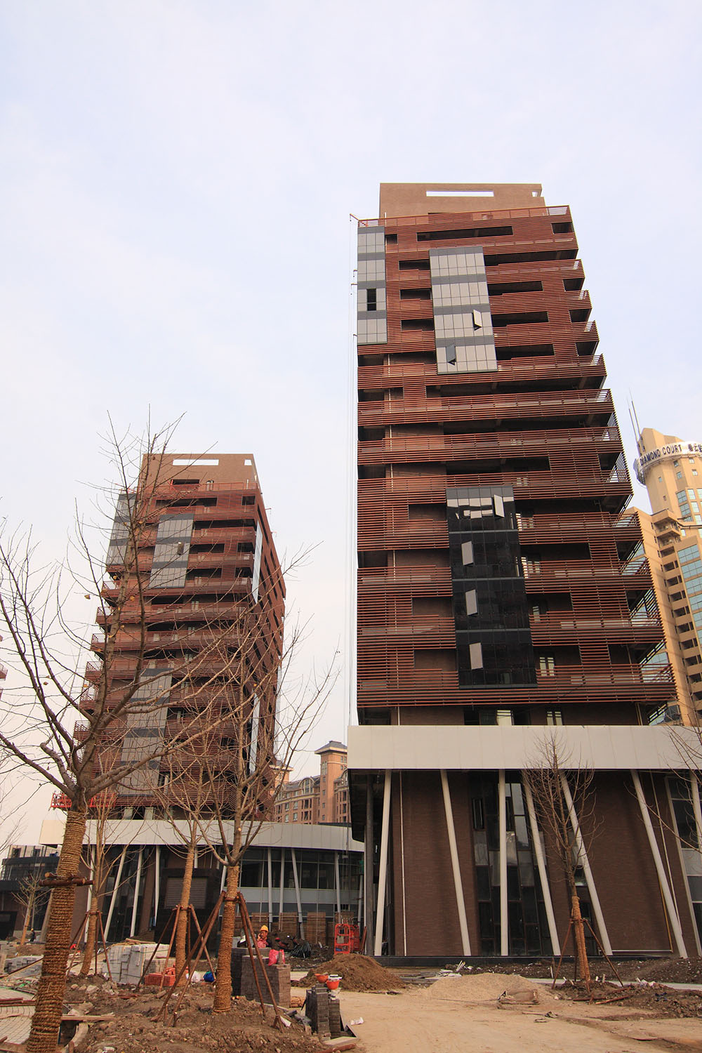 上海碧云宾乐雅服务式公寓位于浦东碧云国际社区,玻璃幕墙外层采用大量陶管、陶板装饰。